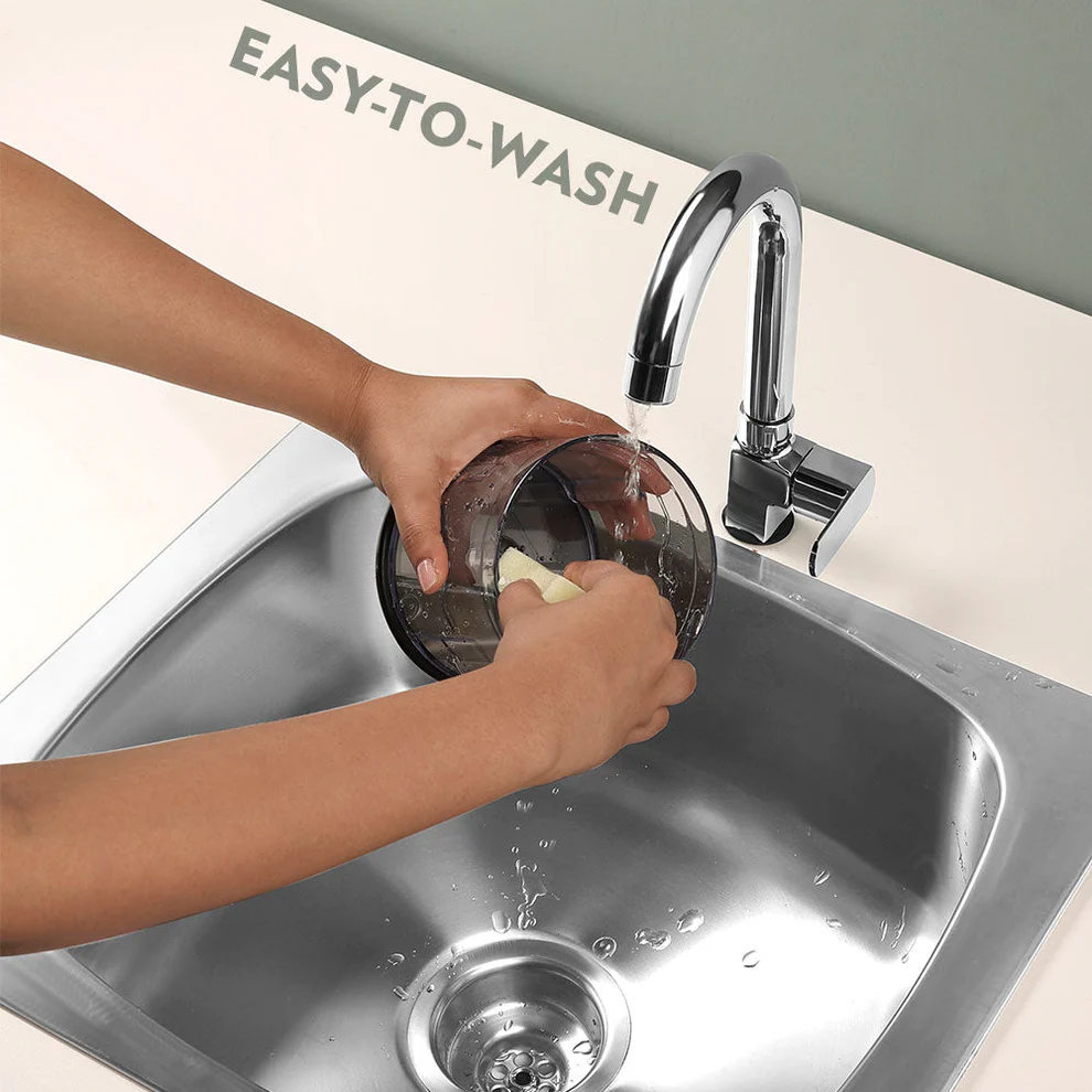 No more tears now while chopping onions, or smelly hands while chopping garlic. Use the powerful Borosil Chef Delite 300W Chopper to make your daily cooking a breeze – it gets rid of the pain of preparation so you can enjoy the process of the actual cooking. It comes with two blades – a single blade and a dual blade for fine chopping. This electric vegetable chopper truly makes cooking a delight – it does your chopping in seconds!