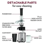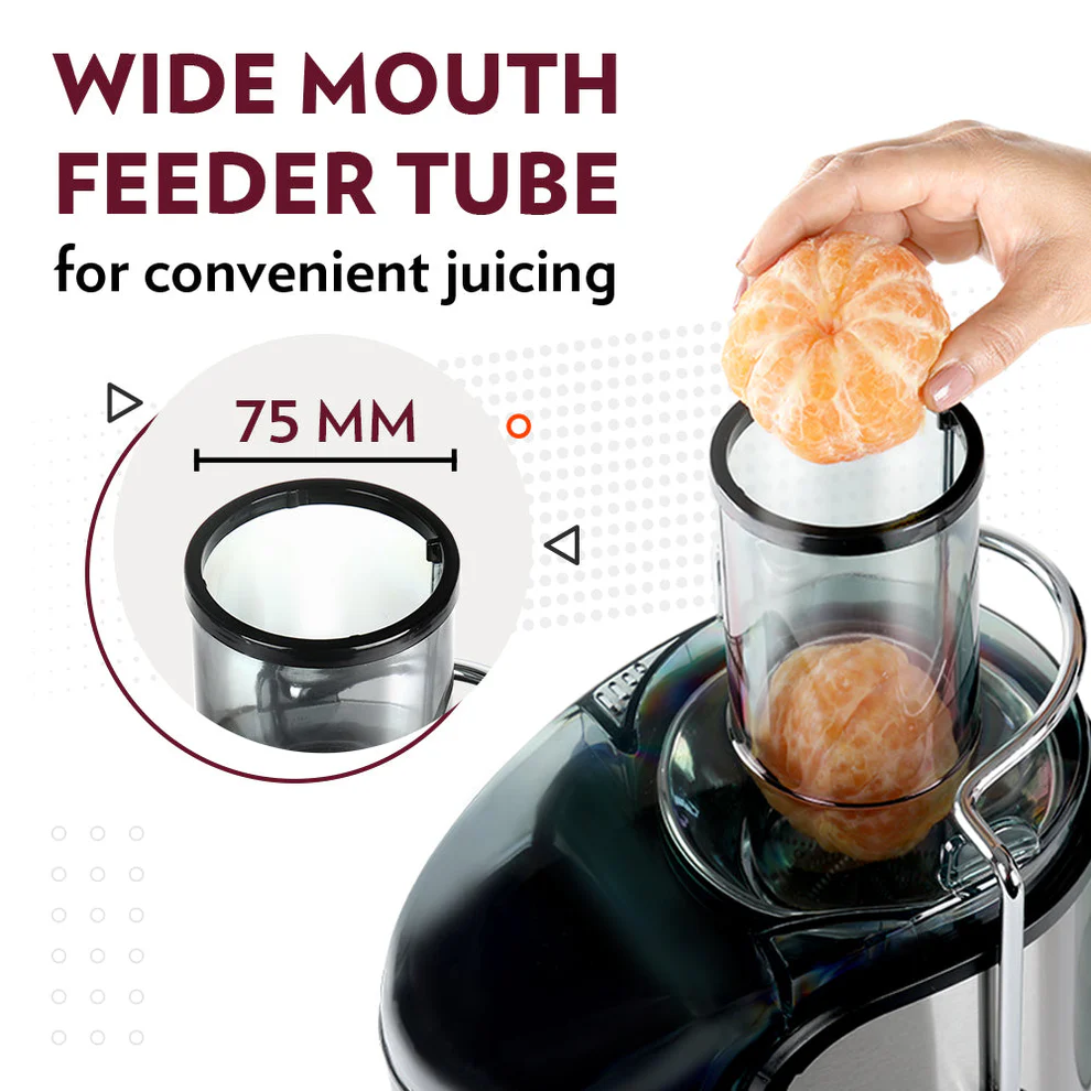 - Wide 75mm mouth feeder tube for convenient juicing