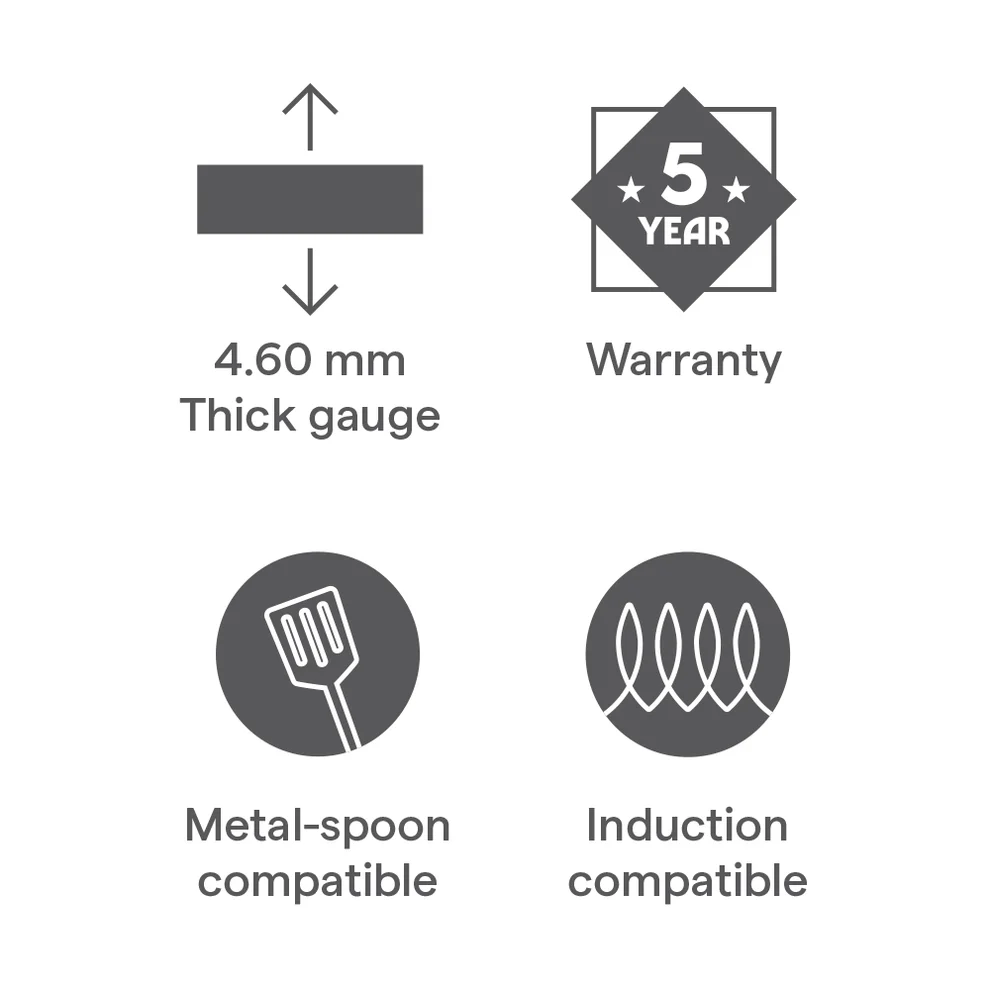 - 4.06mm thick hard anodized body for durability and faster, even heating