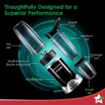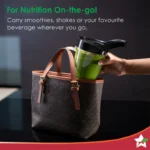 - Specialised Functions: Comes with 2 interchangeable unbreakable Tritan jars Tall Jar (100ml) & Short Jar (650 ml), 1 storage lid and a special sipper lid that can be attached to any jar so you can carry your smoothie / shakes wherever you go.