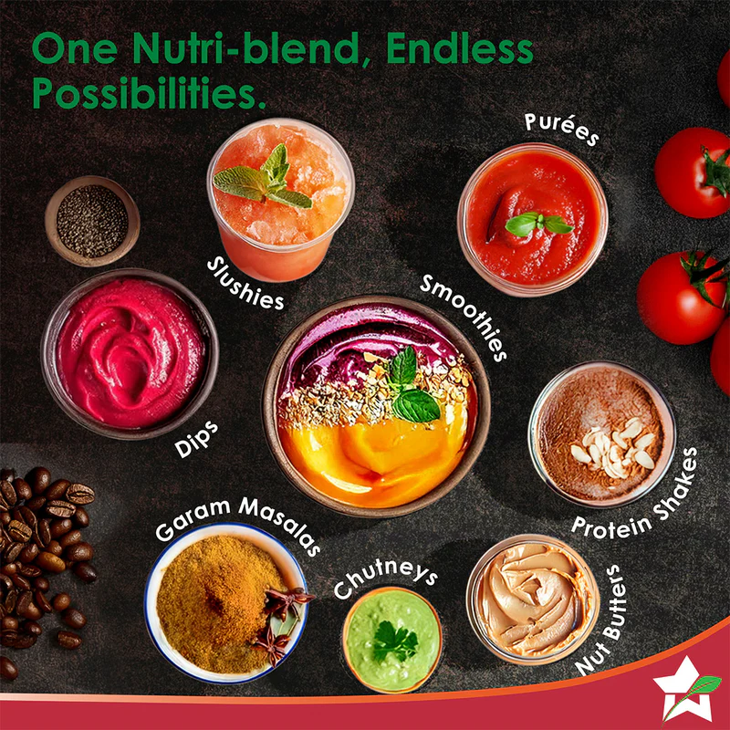 - 100% Copper Motor: This powerful machine grinds the toughest of masalas, chutneys, purees, nuts, fruits & vegetables, and crushes ice for the most refreshing slushes! It ensures nutrition extraction thanks to the incredibly high speed of 22,000 RPM, which is almost twice that of normal mixer-grinders.