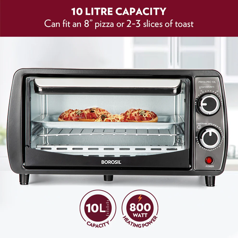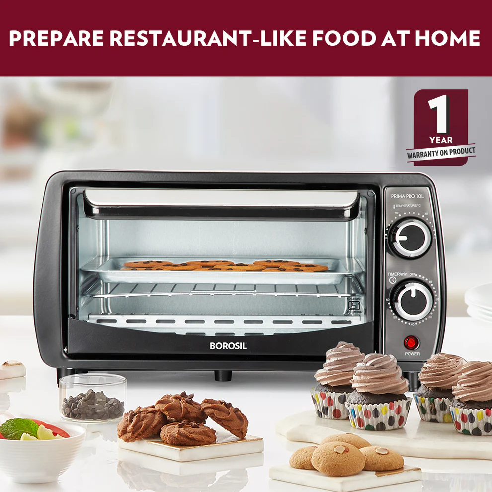 - Borosil prima 10 l oven toaster griller comes with a 1 year warranty