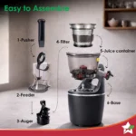 - Easy to Clean: No-drip spout and dishwasher-safe components take the chore out of juicing. It has no sharp blades, so it is safe and easy to clean.