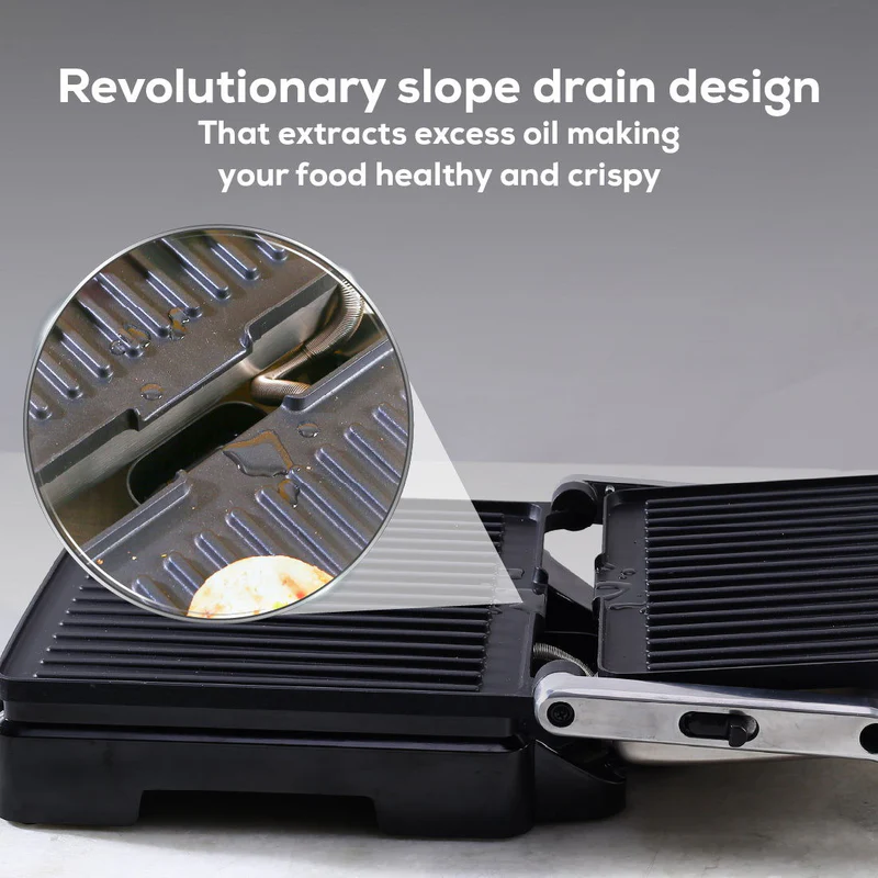 - ADJUSTABLE SLOPE TO REMOVE EXCESS OIL: The Sanjeev Kapoor Tandoor Standard Size (SKT) electric griller & sandwich maker lets you adjust the slope to control the amount of oil used in your dishes, promoting healthier cooking by draining excess oil.Enjoy almost oil-free cooking with the SKT without compromising on taste. Prepare healthy and delicious dishes in the comfort of your home.
