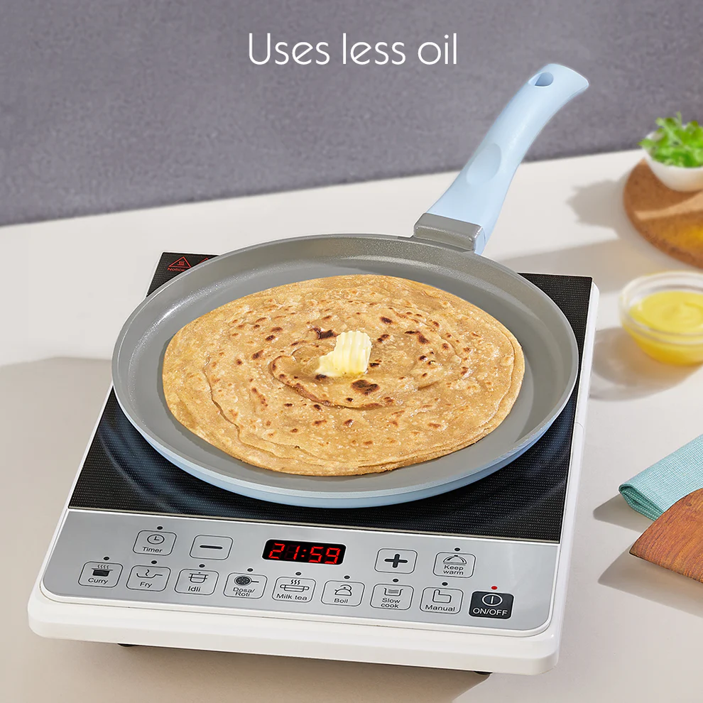 The Vajra Ceramic Flat Tawa is your versatile cooking companion. It’s designed for flatbreads like roti, paratha, or even crispy pancakes. Its perfect size allows you to cook a variety of dishes effortlessly, making it ideal for everyday cooking.